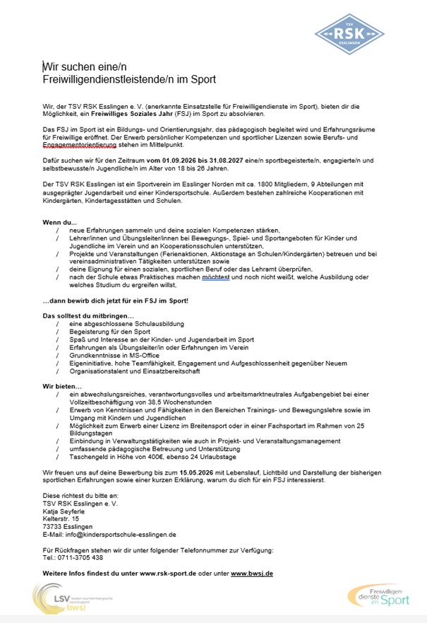 - Sie haben Freude an der Arbeit mit Kindern und können sie mit Ihrer Begeisterung für Sport motivieren.
