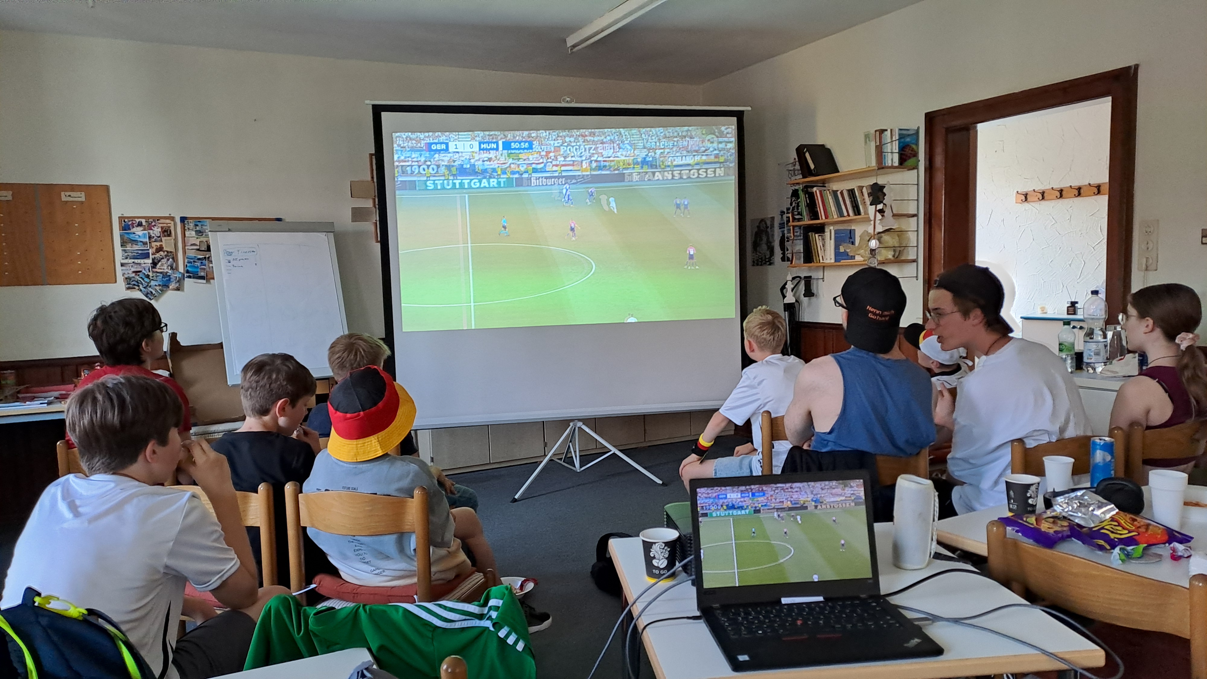 Mit großer Spannung wurde die EM hier im eigenen Land erwartet. Durch den Auftaktsieg gegen Schottland wurde die Euphorie gleich zu Beginn nochmal gesteigert. Entsprechend war die Vorfreude auf das zweite Gruppenspiel sehr groß. Einige Teilnehmer des Jugendsportclubs versammelten sich dafür im Schachraum des RSK für ein Public Viewing. Mit Süßigkeiten, Knabbersachen und einer großen Leinwand ging es um 18 Uhr dann los. Das Spiel der deutschen Mannschaft trug zu einer ausgelassenen Stimmung bei und durch den spielerisch überzeugenden Sieg gingen am Ende alle gut gelaunt nach Hause.