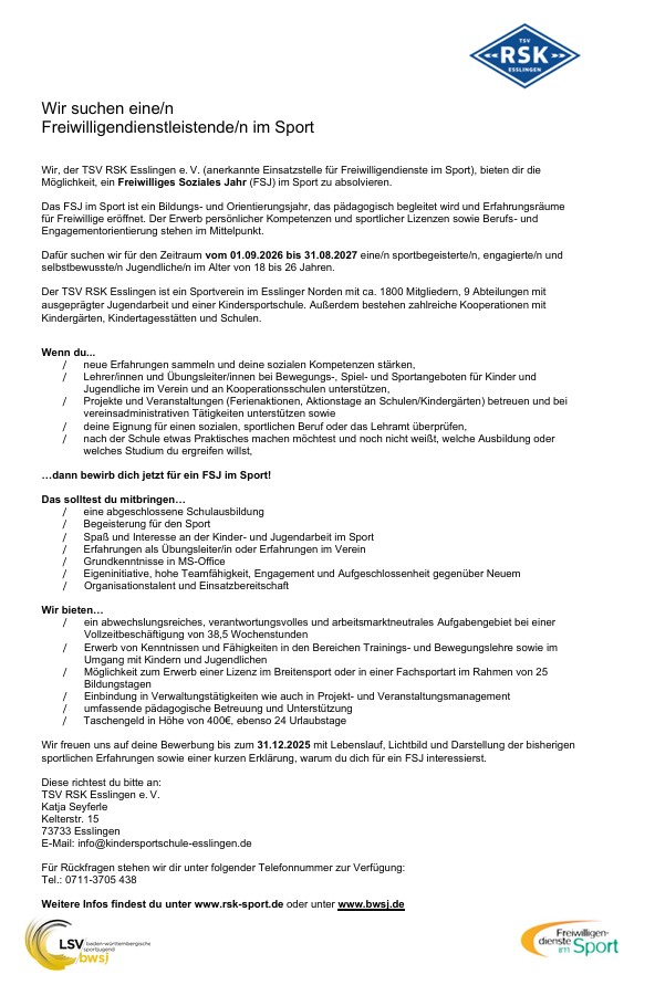 - Sie sind zuverlässig, flexibel, teamfähig, kommunikativ und bringen erste Praxiserfahrung im Kindersport mit.
