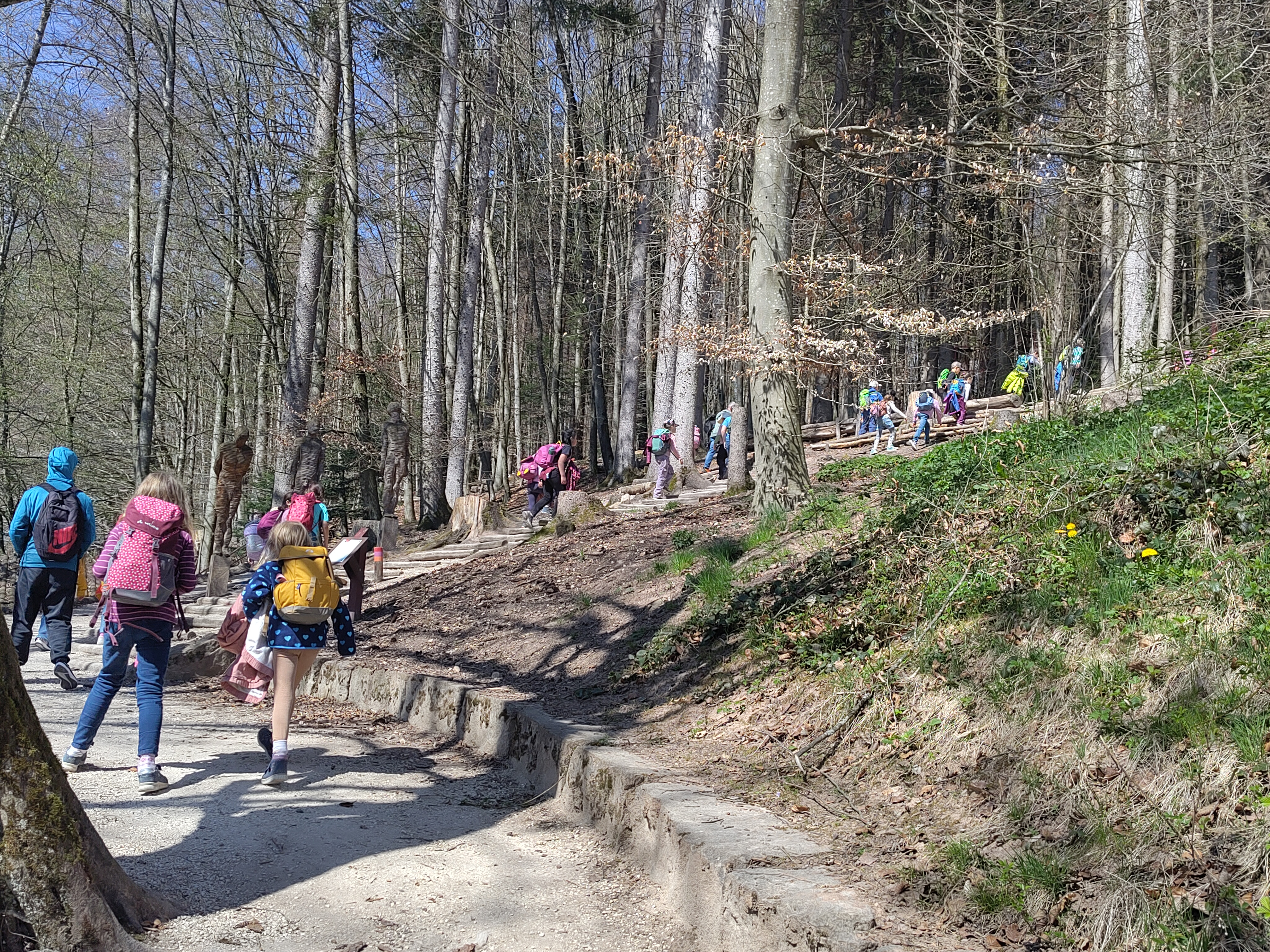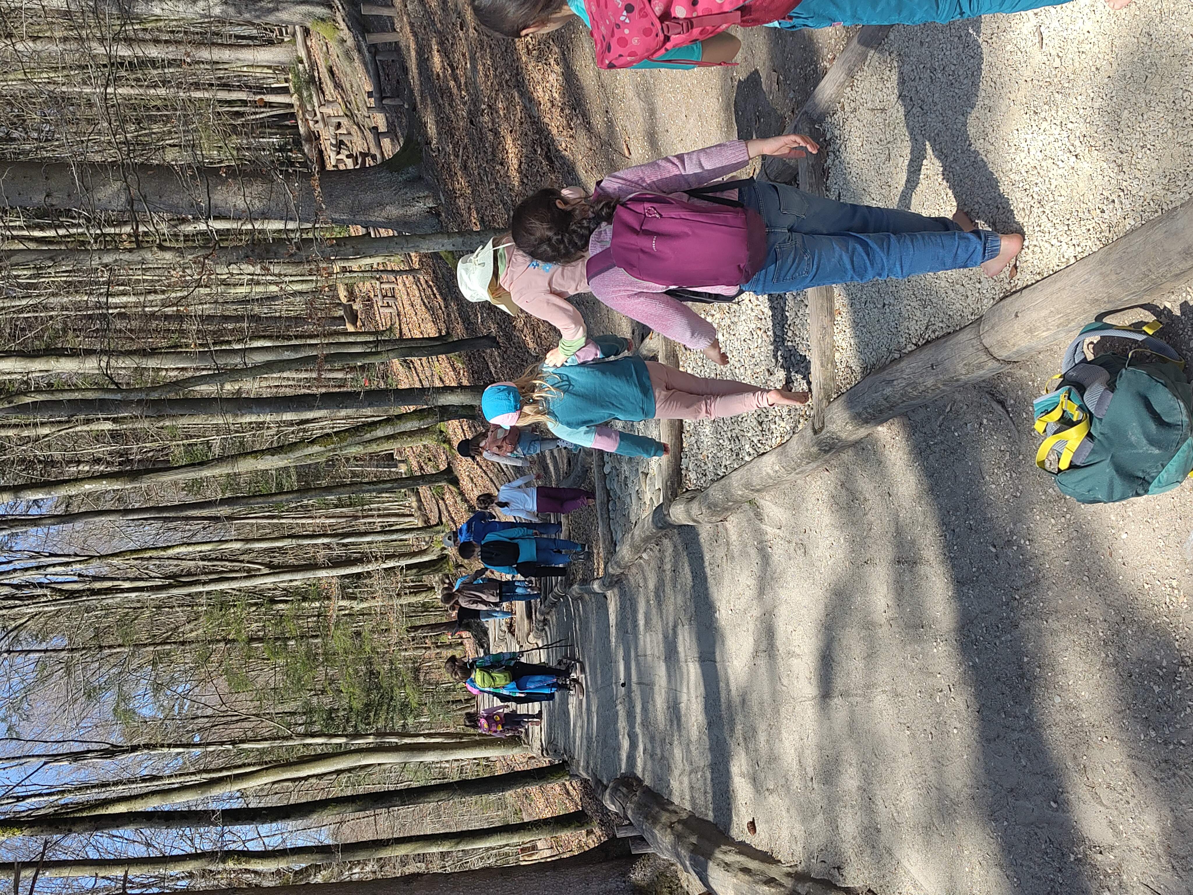 Am Freitag, 11.04.2025 fuhren wir abenteuerlich mit Bus und Bahn in die Nähe von Welzheim zum Erfahrungsfeld der Sinne. Zahlreiche Stationen drinnen und draußen, mitten im Wald oder im Haus in der roten Achse. Überall gab es etwas zu riechen, hören, tasten, balancieren, experimentieren und staunen. Unter anderem gibt es z.B. eine Schmetterlingsstation, eine Tieroase, einen Niedrigseilgarten, Barfußpfad, vieles zum Ausprobieren und Experimentieren. Nach tollen Stunden fuhren wir mit den Öffis zurück mit dem Vorsatz möglichst bald wieder zu kommen.