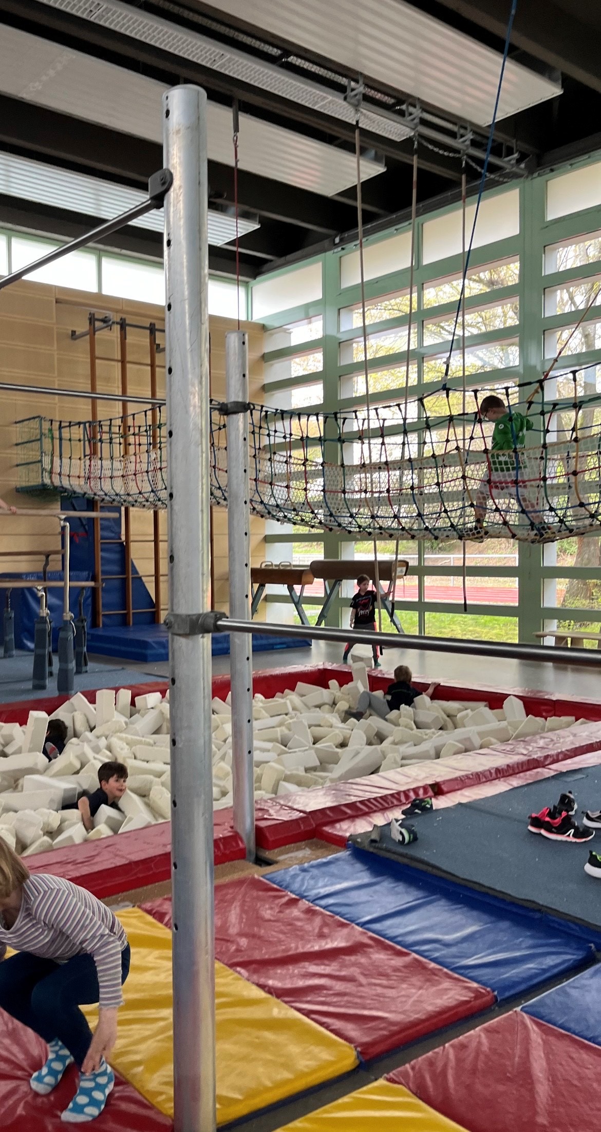 In den Faschingsferien fuhren Kinder der Kindersportschule Esslingen mit der S-Bahn Richtung Köngen in den Indoor- Abenteuerspielplatz Funpark. Hier konnten sich alle so richtig austoben. Trampolinspringen, ein verzwicktes Riesenlabyrinth, eine Kistenrutsche, eine Hüpfburg und noch viele weitere spannende Attraktionen warteten auf die Kinder. Schuhe aus und los hieß das Motto und alle hatten einen Riesenspaß bei der Sache. Viel zu schnell war die Zeit vorbei und die Heimreise nach Esslingen musste angetreten werden. Gute Vorsätze, die neu erlernten Tricks sofort nach den Ferien in der KiSS zum Besten zu geben, wurden gleich in der S-Bahn noch gefasst.