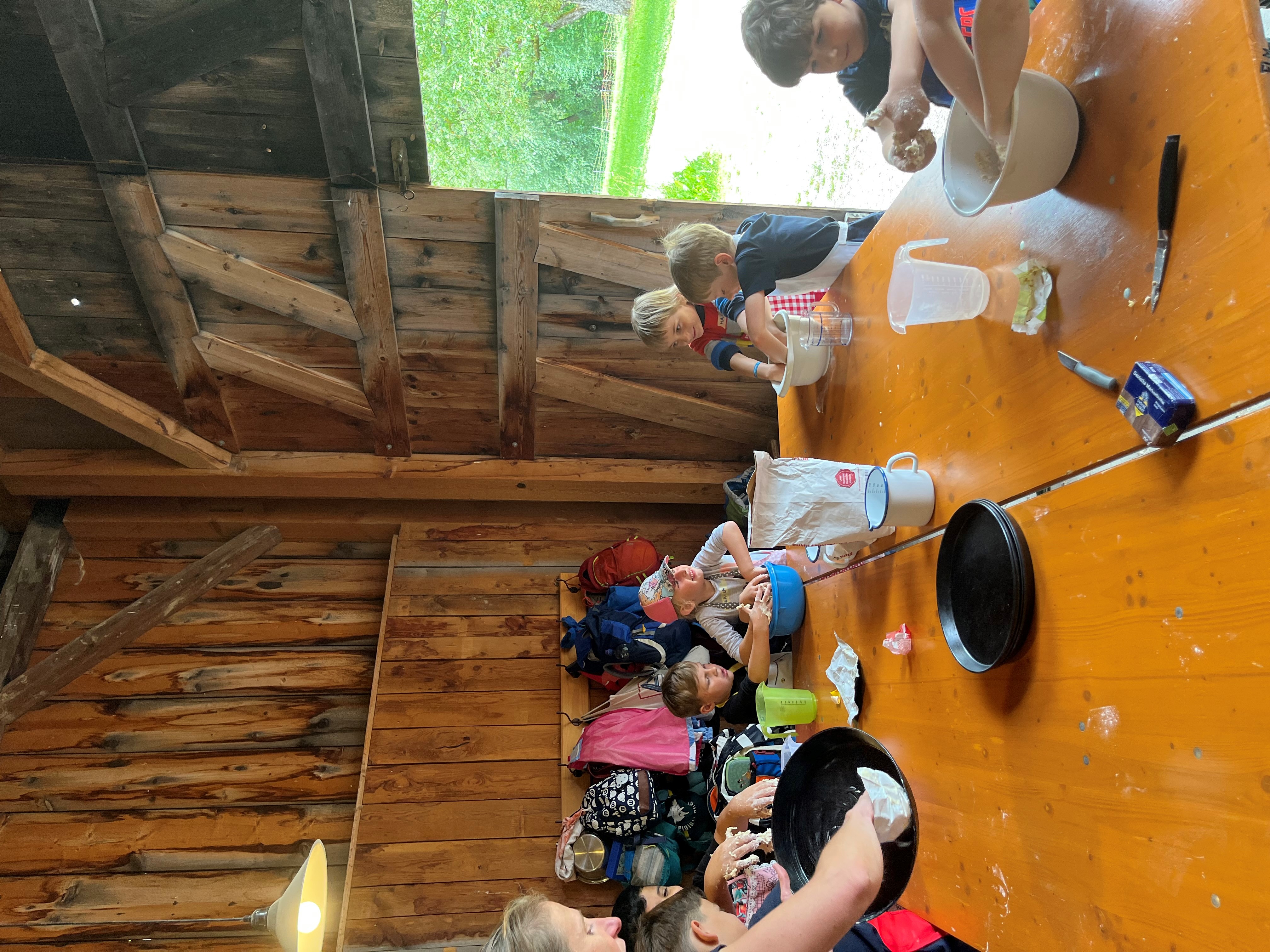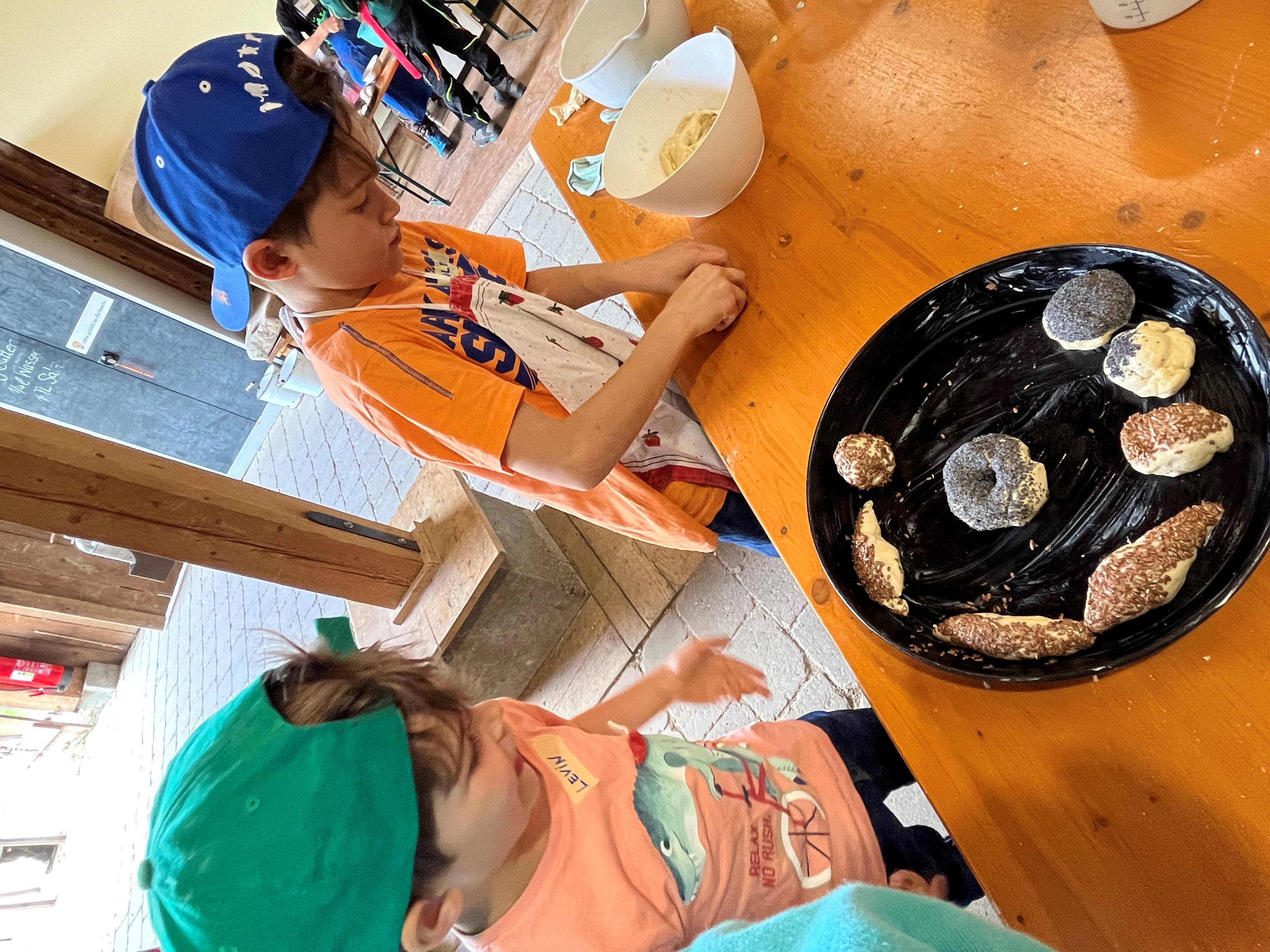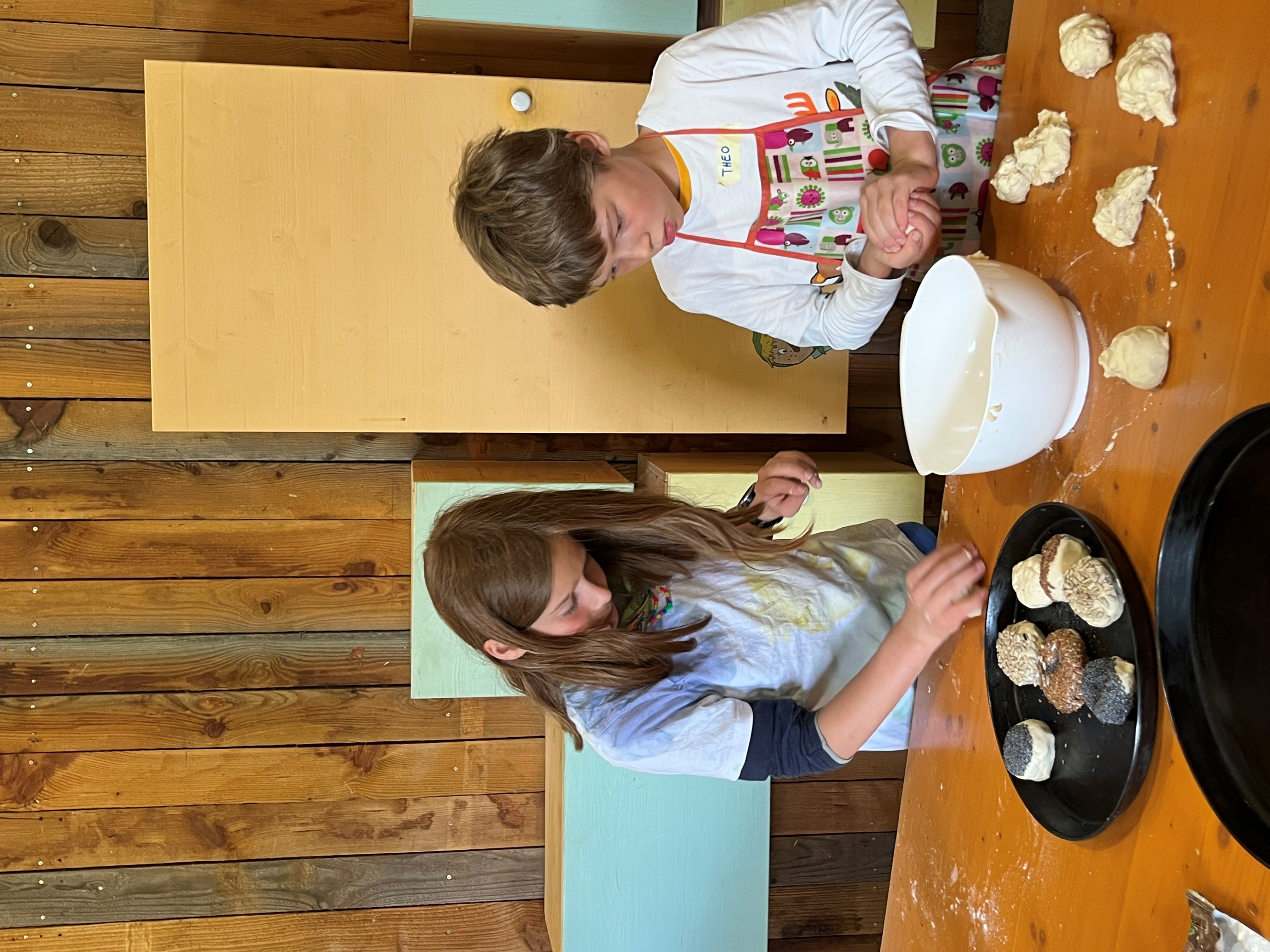 Bei dieser Aktion durften die Kinder in einem mehr als 100 Jahre alten Backhaus unter fachkundiger Anleitung backen. Die Kinder heizen den Holzbackofen ein, bereiten gemeinsam den Teig für die Brötchen vor und treffen die Vorbereitungen zum Einschießen der Brötchen in den heißen Backofen. Dabei lernen sie Arbeitsgeräte wie Ascheschieber (schwäbisch „Kruck“), Hudelwisch und Backschießer kennen. Mit der „Zeitungsknäul-Methode“ testen sie die Backtemperatur des Holzbackofens und erfahren was es mit dem Spruch „Nur net hudle“ auf sich hat...