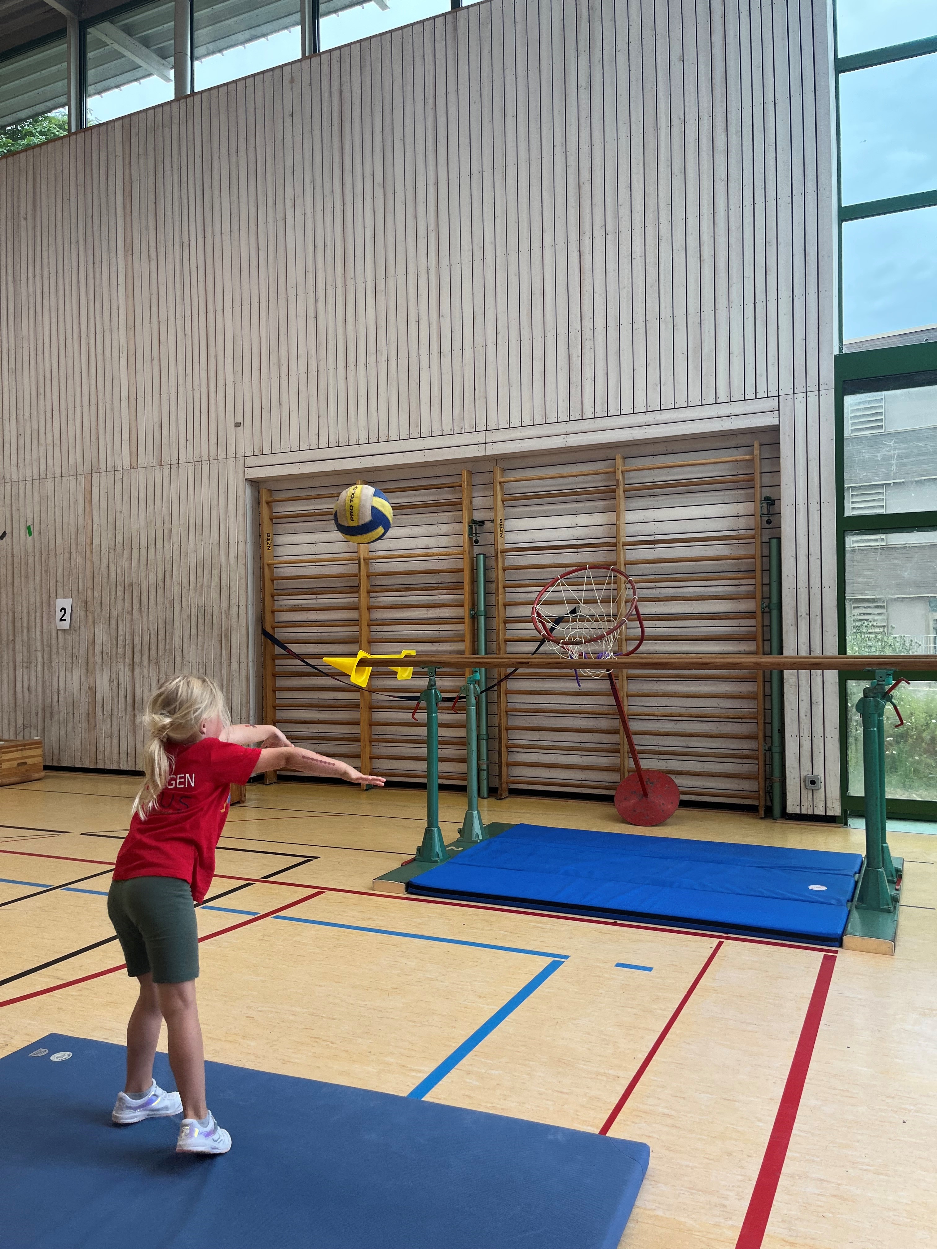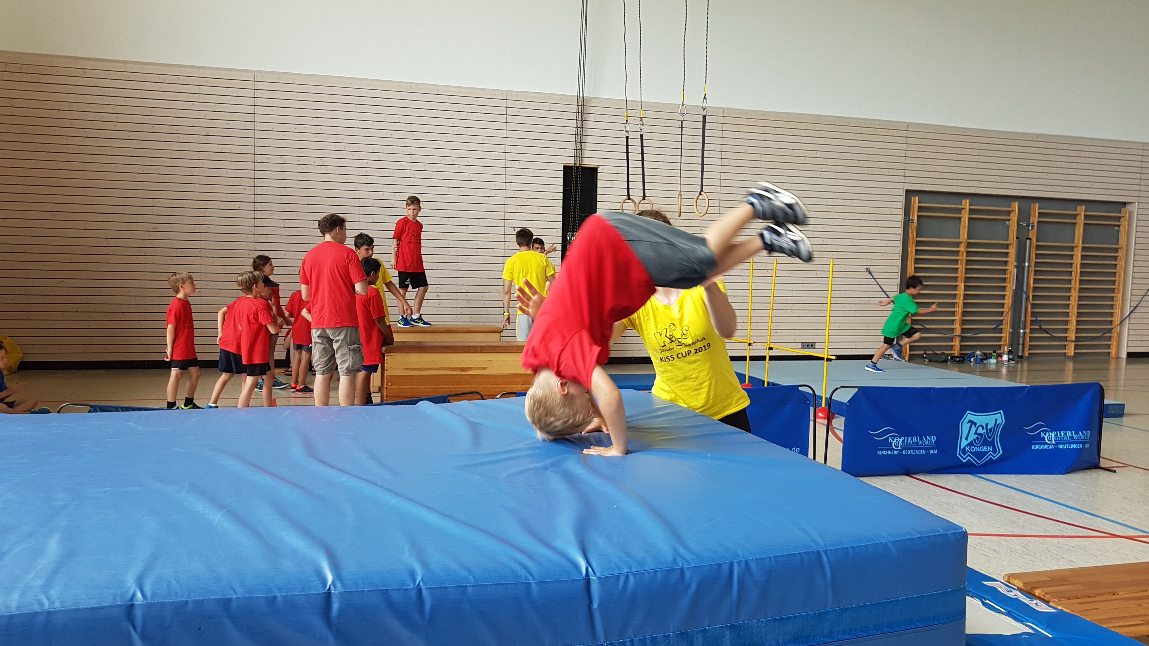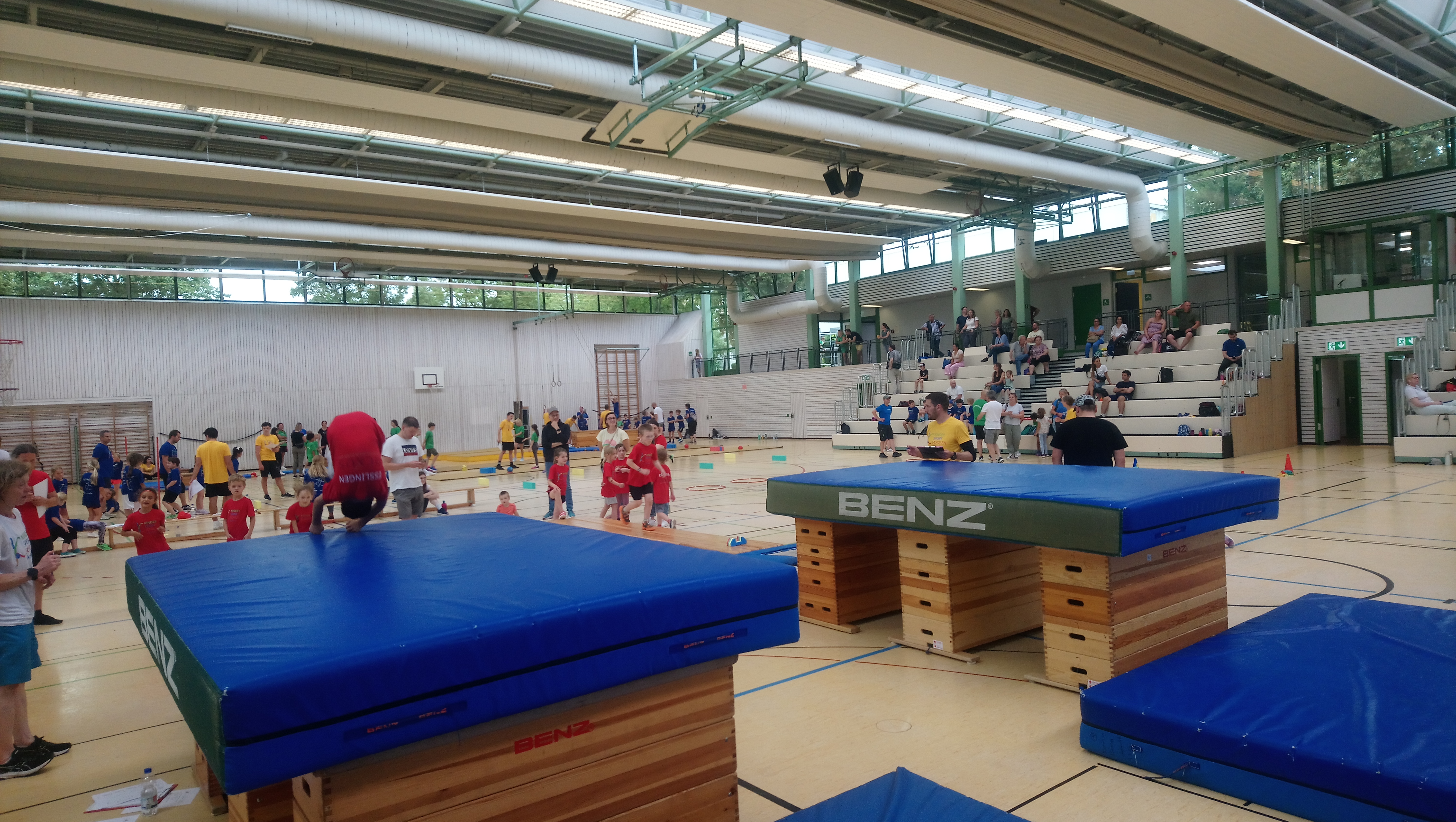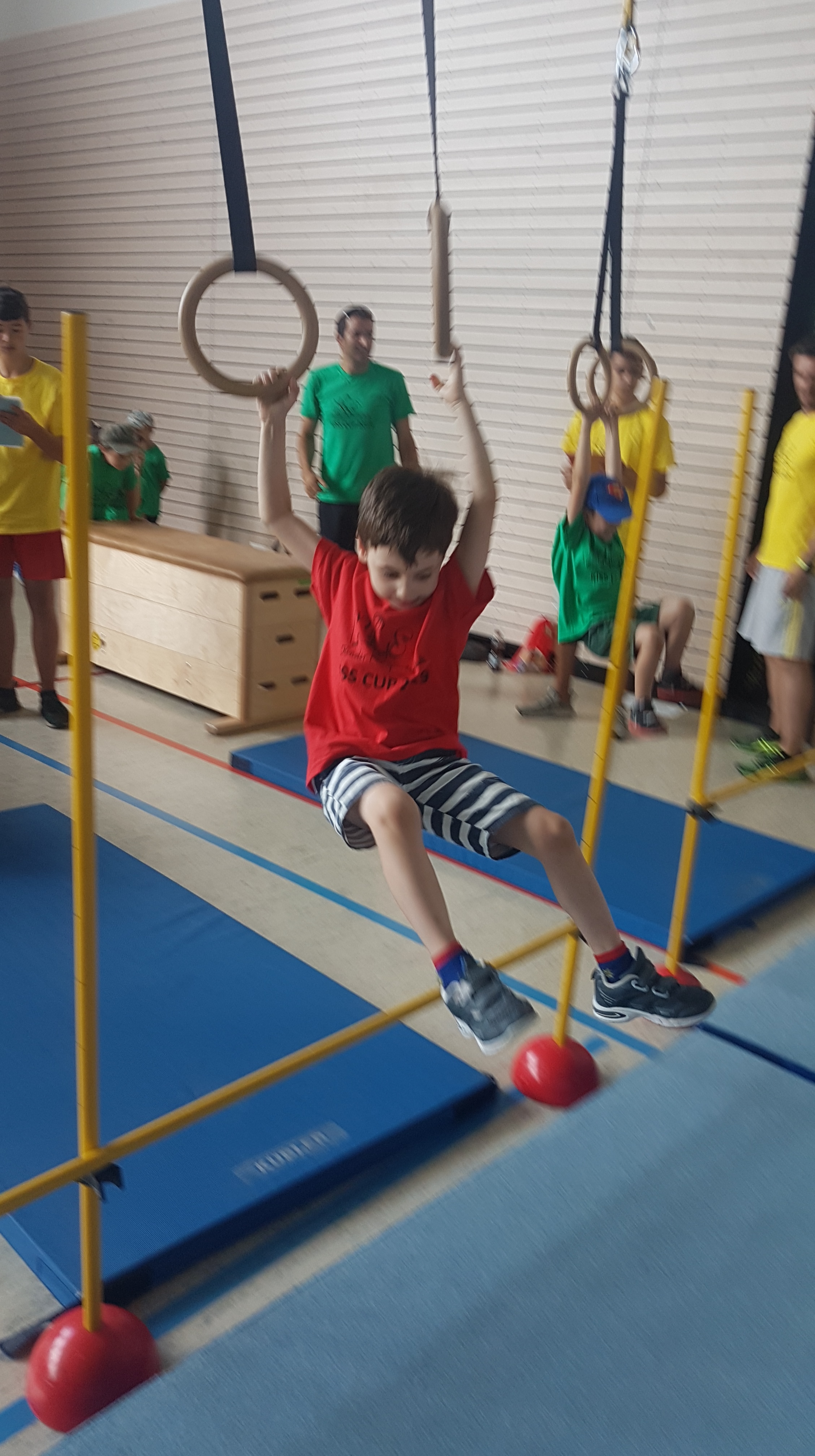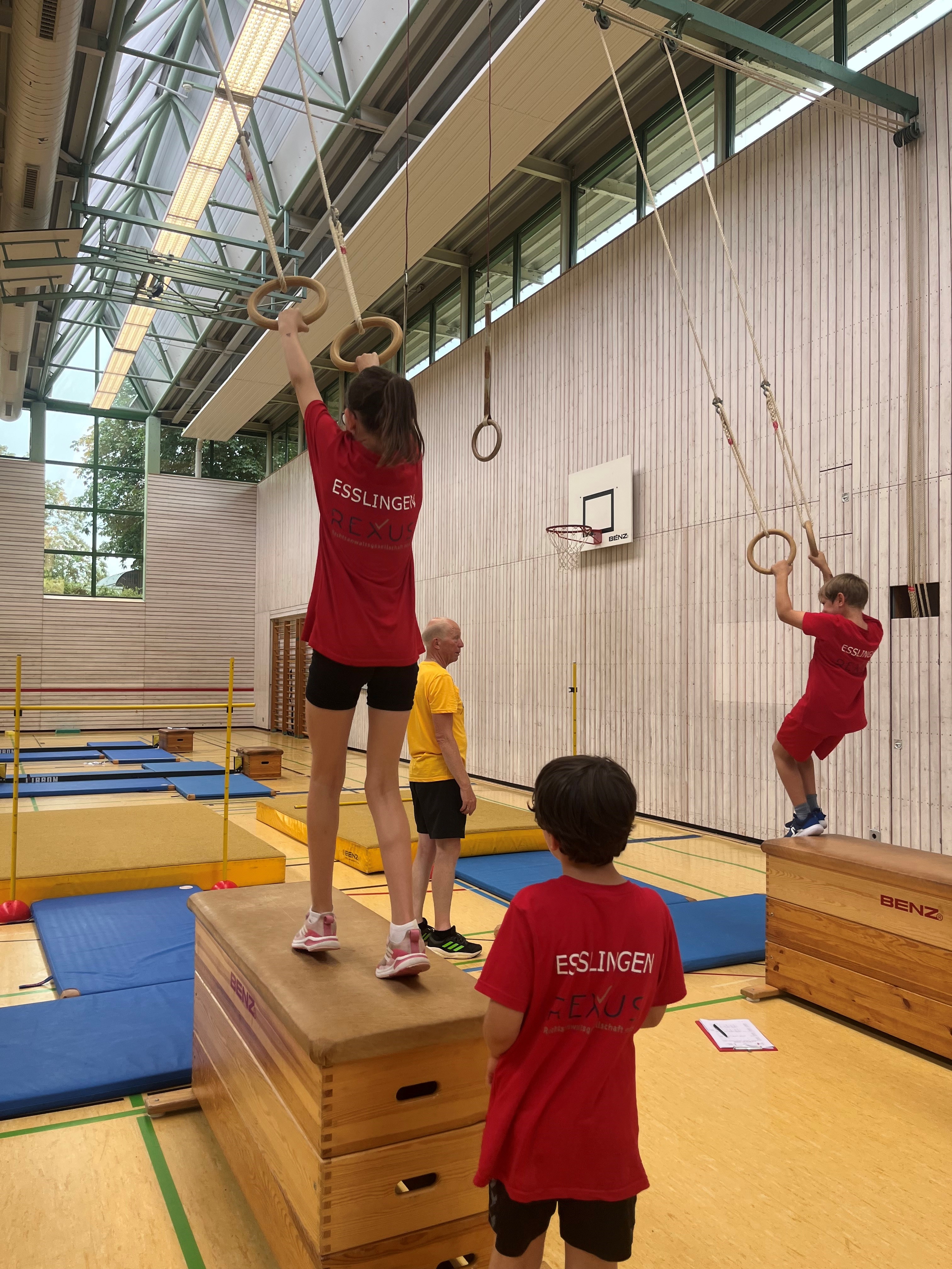 Schwingen mit Ringen über ein Hindernis, Erklimmen eines Mattenbergs, Turnen am Boden, Rhythmisierungsläufe, ein Hüpfdiktat, ein Ballparcours, Trampolinspringen, Balancieren über die Slackline.. viele verschiedene Aufgaben waren zu absolvieren.