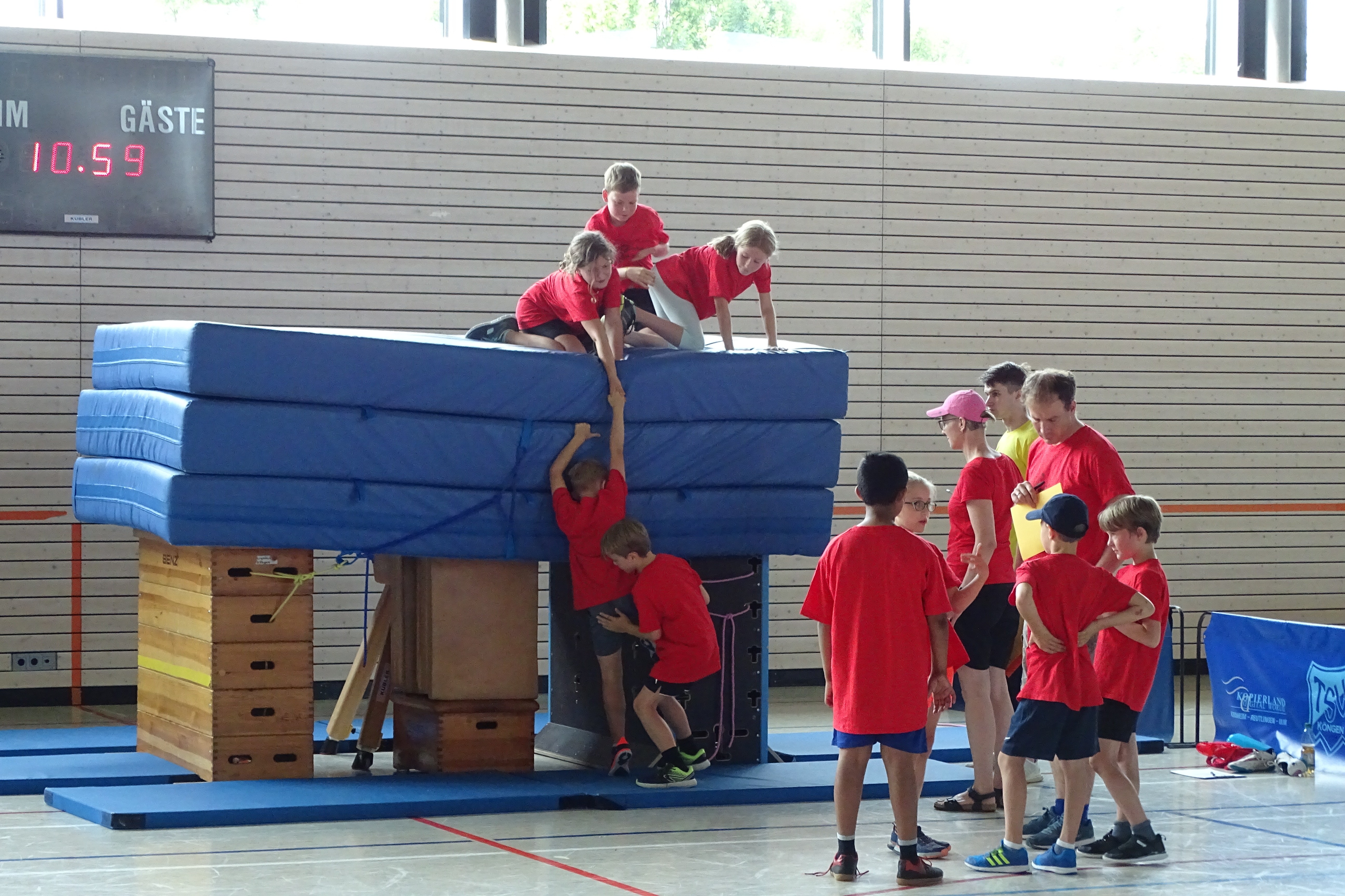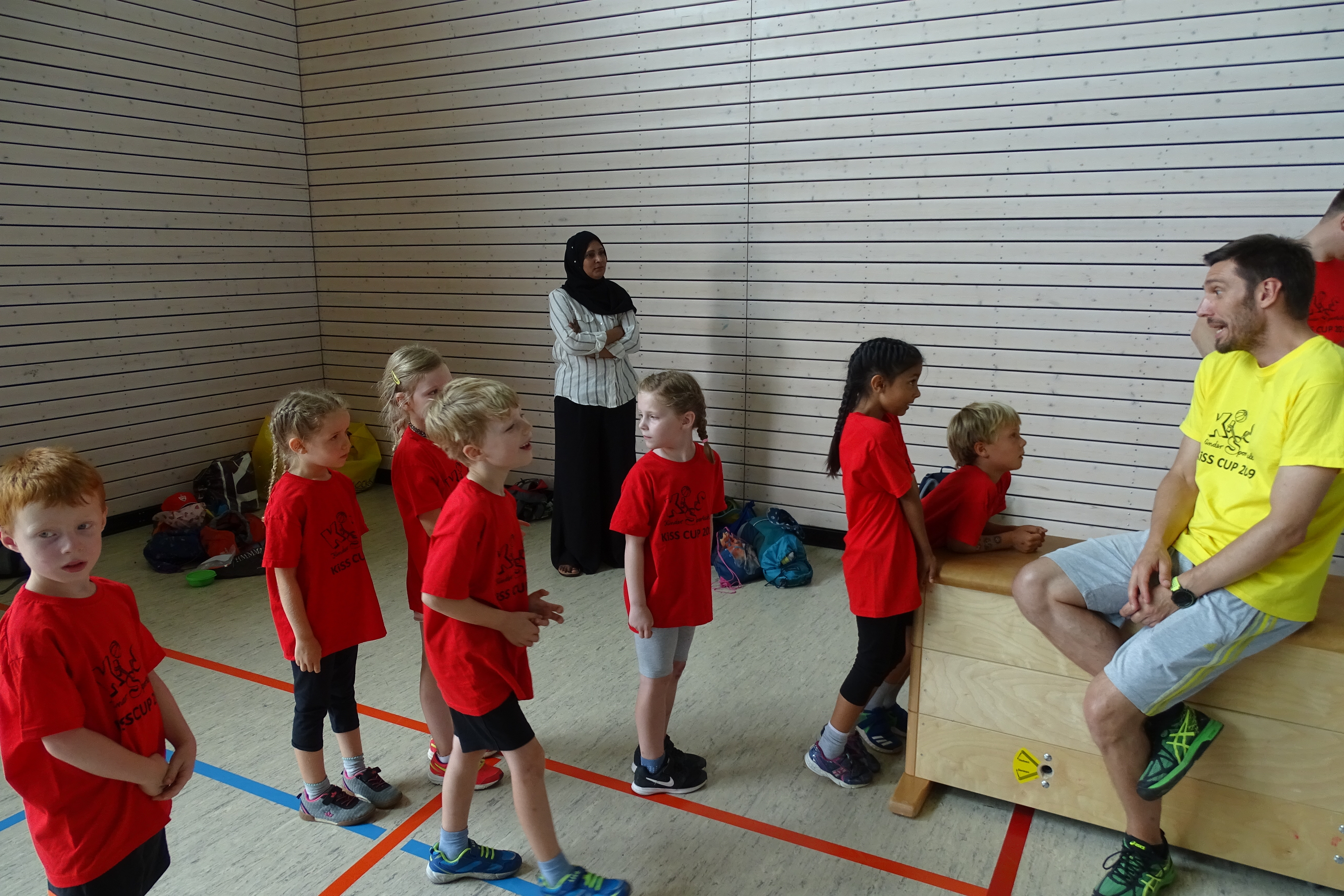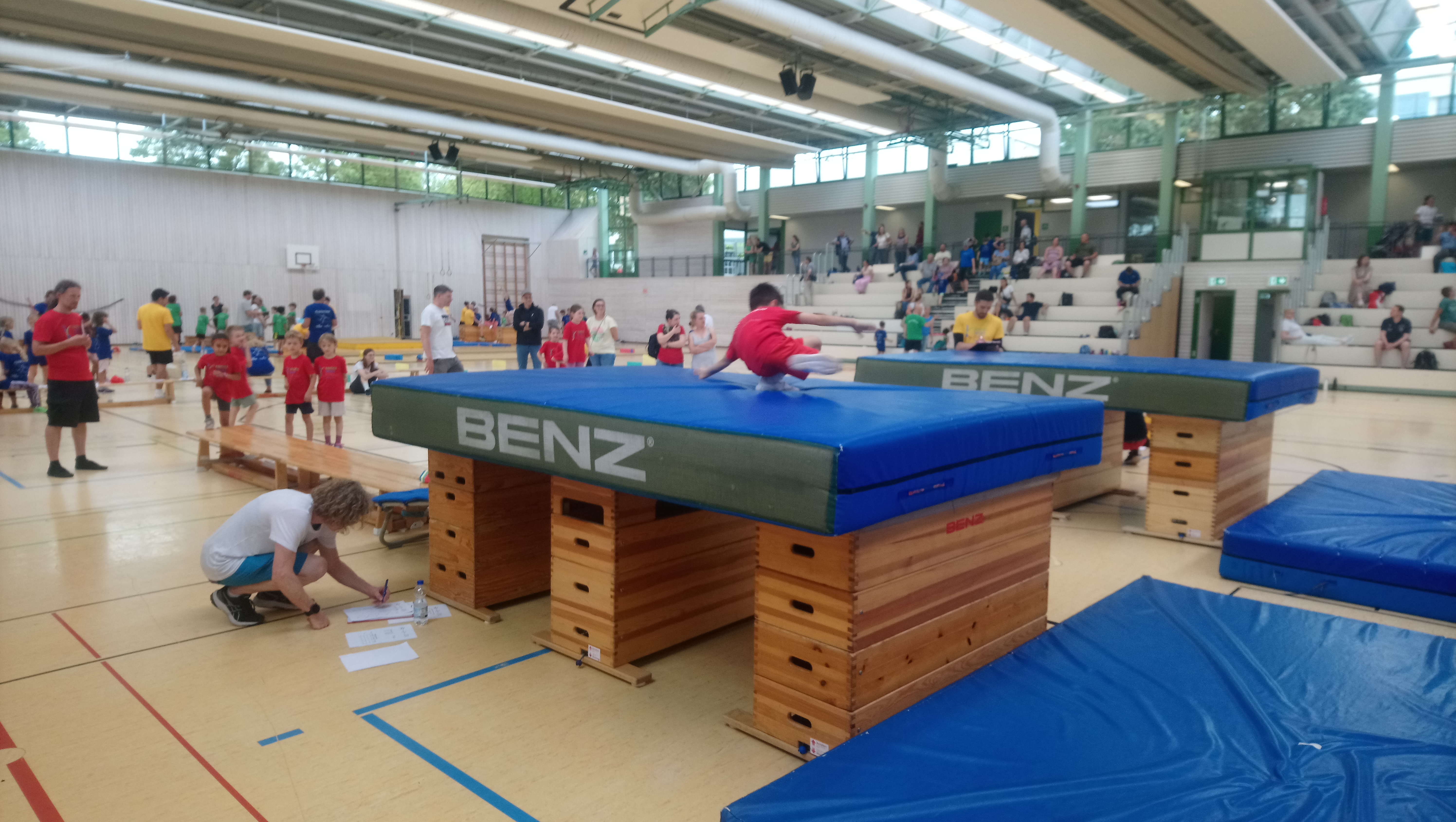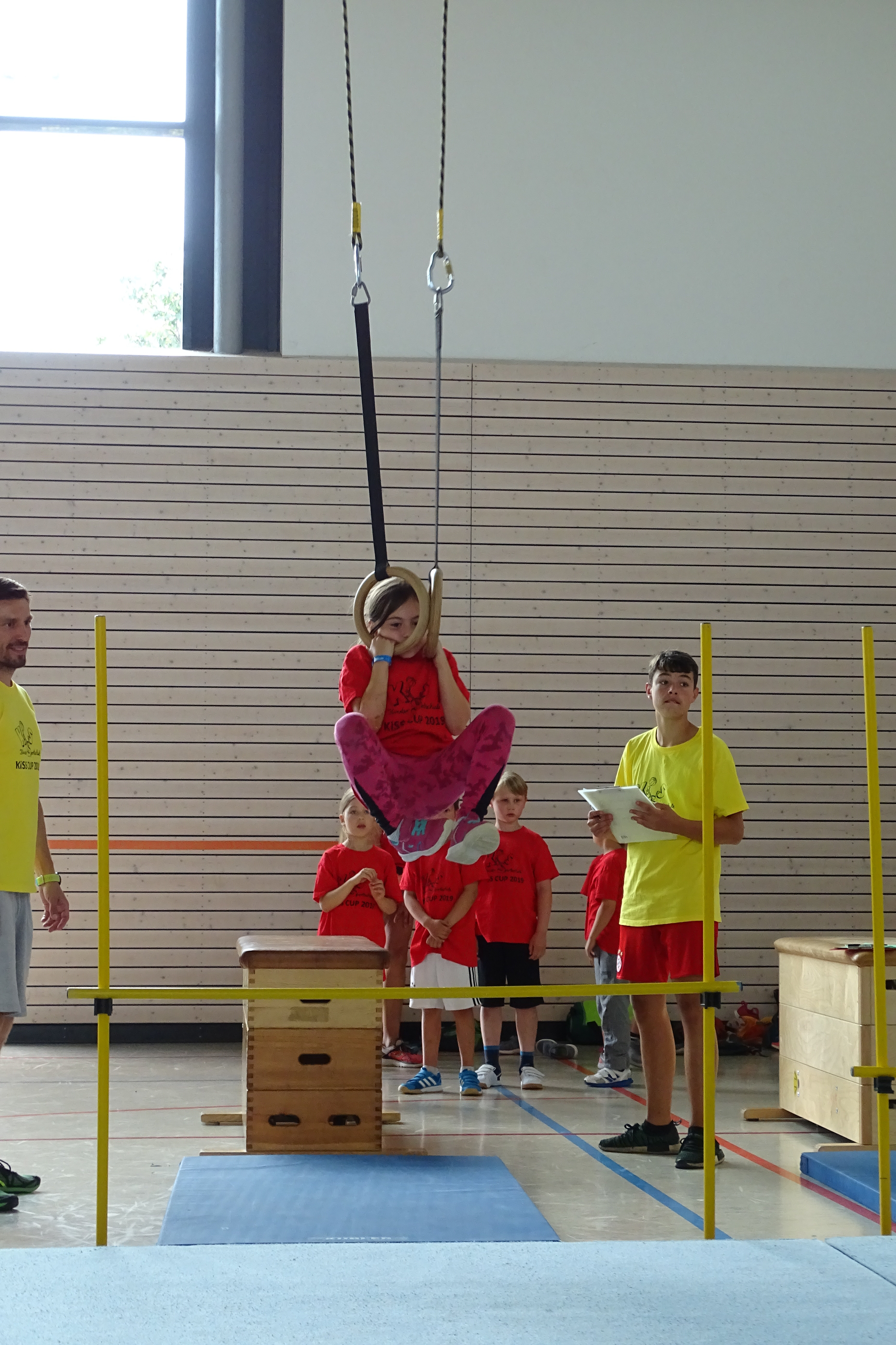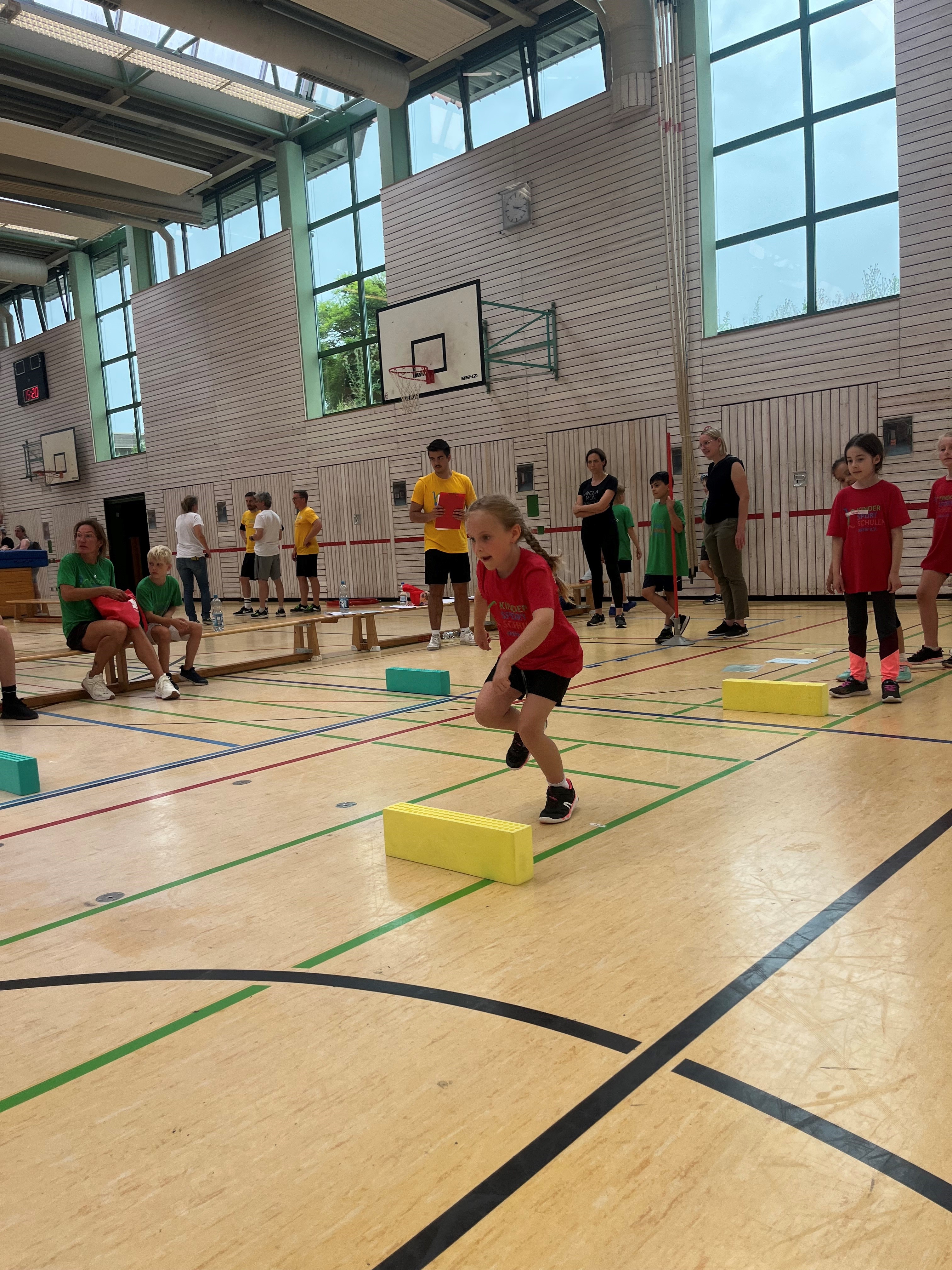 Schwingen mit Ringen über ein Hindernis, Erklimmen eines Mattenbergs, Turnen am Boden, Rhythmisierungsläufe, ein Hüpfdiktat, ein Ballparcours, Trampolinspringen, Balancieren über die Slackline.. viele verschiedene Aufgaben waren zu absolvieren.