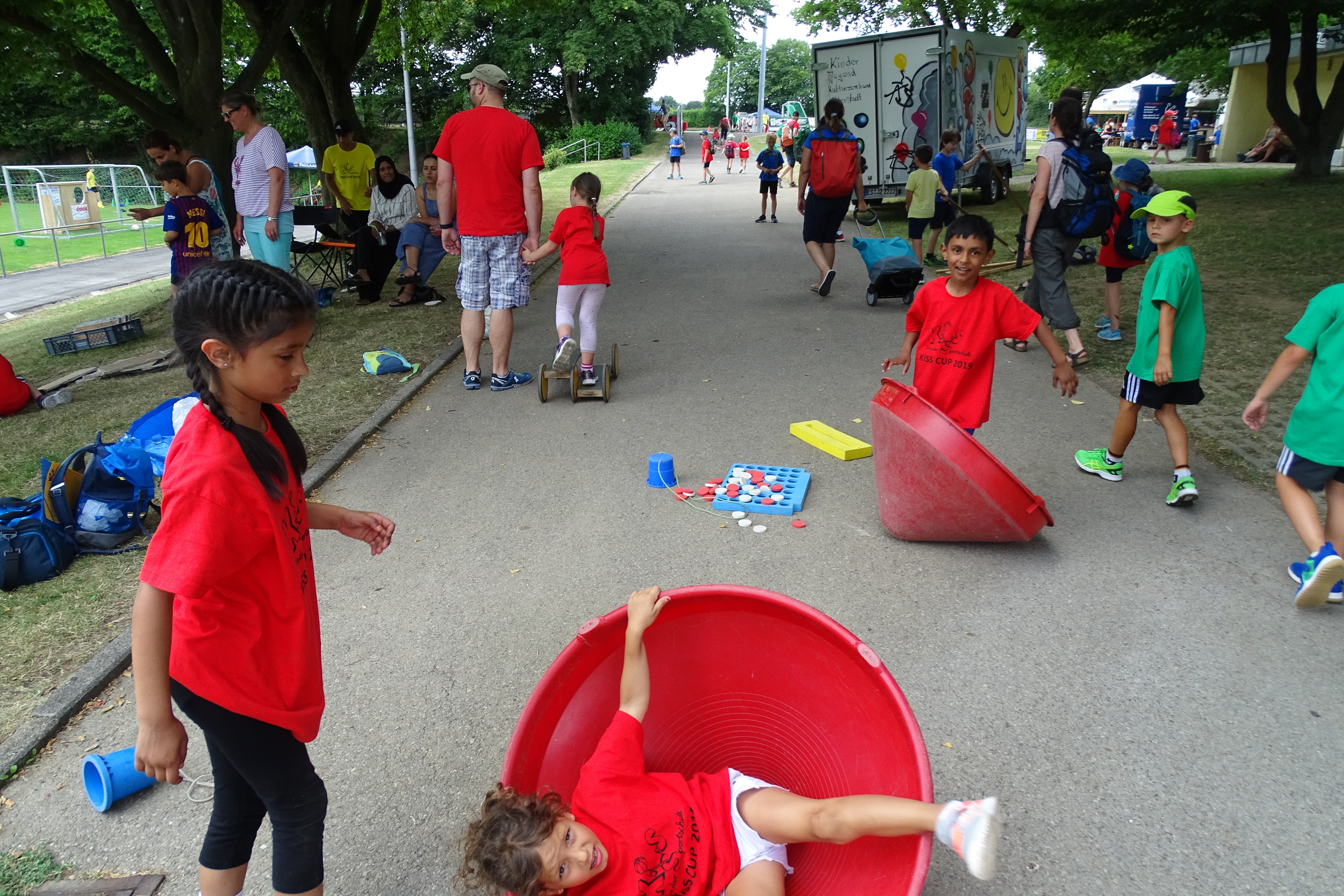 Aber nicht nur der Wettkampf, sondern auch das Drumrum waren wichtig an diesem Tag, Hüpfburg, Spielmobil, Slackline….jede Menge gab es nebenbei noch zu tun in den Wettkampfpausen.